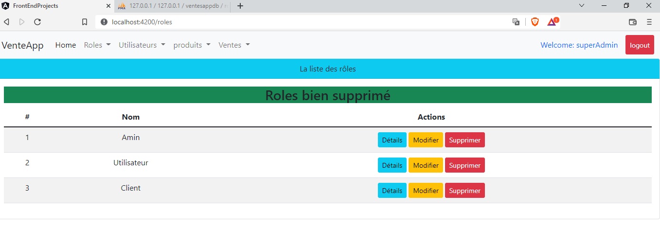 Angular:Role Afficher supprimer ,modifier